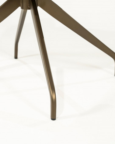 Stolička Hugo stelesňuje rafinovanú eleganciu vďaka svojmu elegantnému dizajnu a vynikajúcemu remeselnému spracovaniu. Dokonale vyvažuje pohodlie a štýl a svojou sofistikovanou siluetou skrášľuje každý obytný priestor. Jej odolné materiály zaručujú trvalú kvalitu, vďaka čomu je nadčasovým doplnkom vášho domova alebo kancelárie. Pozdvihnite svoj zážitok zo sedenia s decentným luxusom stoličky Hugo.