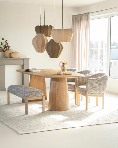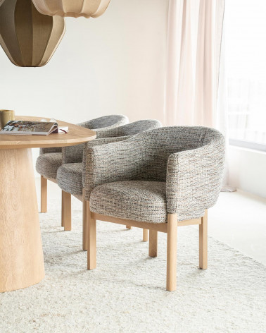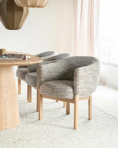 Kombinácia dubového dreva, kvalitnej látky a peny zaručuje pohodlné a odolné sedenie, zatiaľ čo tlmený taupe odtieň prináša do miestnosti teplú a príjemnú atmosféru. Micha je ideálna na každodenné použitie a jej kvalitné spracovanie zaisťuje dlhodobú životnosť a spoľahlivosť.