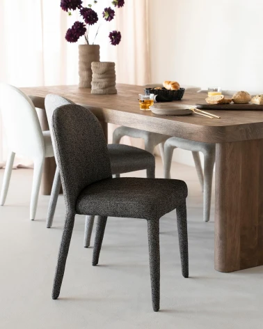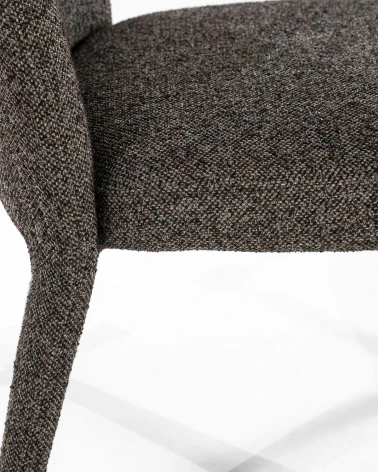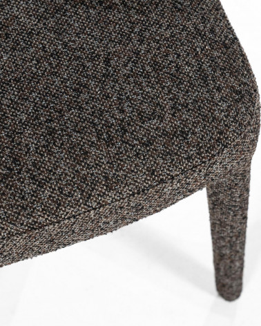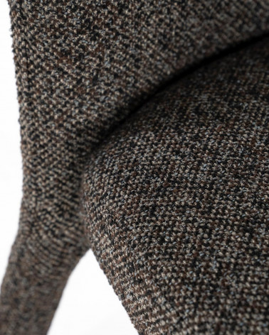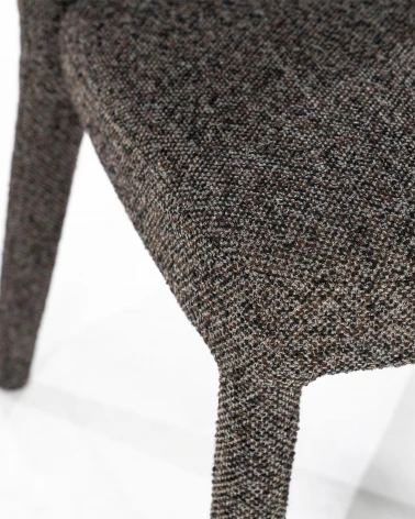 Kombinácia mäkkej látky a pevnej kovovej konštrukcie vytvára štýlový a odolný kus nábytku, zatiaľ čo teplý hnedý tón dodáva priestoru útulnosť. Stolička je navrhnutá tak, aby poskytovala pohodlie aj pri každodennom používaní, skvele sa hodí na formálne stolovanie, rodinné večere či dlhé spoločenské posedenia.