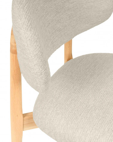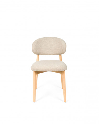 Stolička WANDA vyniká svojou prirodzenou eleganciou a obklopujúcim dizajnom, ideálnym pre tých, ktorí hľadajú rovnováhu medzi štýlom a funkčnosťou. Opiera sa o pevné nohy z bukového dreva, ktorých konštrukcia vyžaruje teplo a stabilitu, pričom dodáva priestoru pokojný charakter, dokonale zapadajúci do súčasných, škandinávskych alebo organicky ladených interiérov.