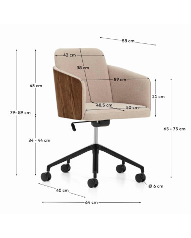 Materiály: 30% Eukalyptové drevo (Eucalyptus camaldunensis), 20% PENA PU (Polyuretán), 17% Oceľ, 15% MDF s nízkymi emisiami formaldehydu E0, 10% Textília, 8% Dýha z jasena (Fraxinus spp.)