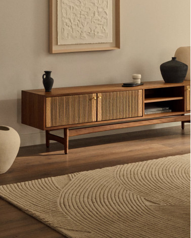 Koberec s žakárovým vzorom vyrobený zo 100 % vlny. Ručne vyrobený kus z prírodného materiálu, vďaka čomu je každý kus exkluzívny s vlastnými odtieňmi a textúrami. Vlna je hypoalergénny a izolačný materiál.