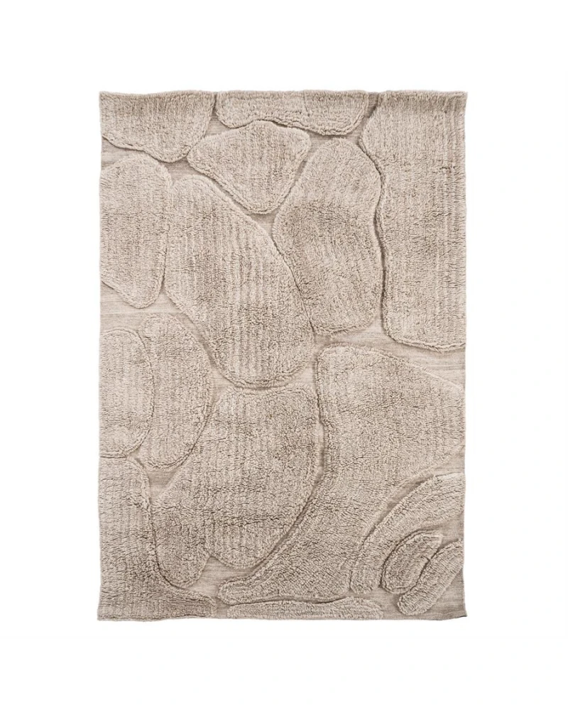Koberec Kala z kolekcie By-Boo je dostupný v dvoch veľkostiach a v svetlo hnedej a bielej farbe.