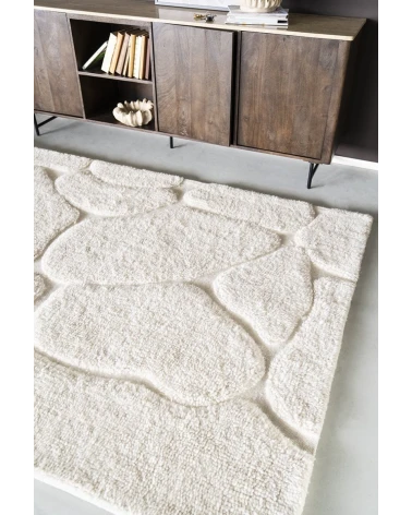 Koberec By-Boo Kala je štýlový a teplý koberec zdobený atraktívnym grafickým vzorom v dvoch jemných farbách. Tento koberec sa vyznačuje organickými líniami, ktoré vytvárajú podmanivý vzhľad, ktorý sa vám rýchlo neomrzí.