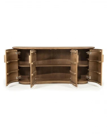 Komoda ponúka štyri priestranné dvierka, vďaka ktorým získate dostatok skrytého úložného priestoru na prehľadné usporiadanie všetkých nevyhnutností. Zachováva si čistý, harmonický a moderný vzhľad, ktorý sa prirodzene začlení do rôznych štýlov interiéru.
