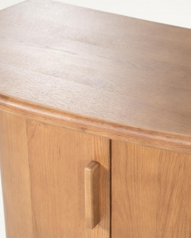 Štvordverová komoda Josh od značky Eleonora spája nadčasovú eleganciu s praktickým riešením úložného priestoru. Vyrobená z lakovaného dubového dreva, vyniká hladkým povrchom, ktorý zvýrazňuje prirodzenú kresbu dreva a dodáva nábytku rafinovaný charakter.