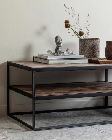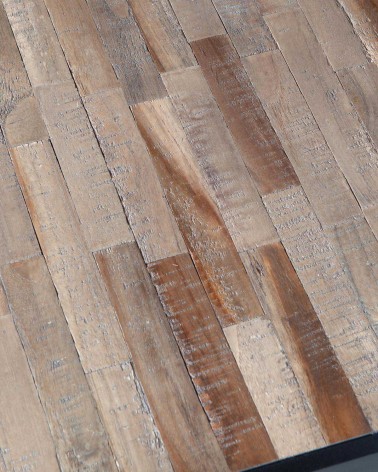 Konferenčný stolík Vic je z kolekcie holandskej značky WOOOD. Vrch je vyrobený z malých líšt z recyklovaného teaku s čiernym železným podstavcom. Tieto lamely sú pripevnené k MDF - preglejkovej doske. Jedinečný kúsok do vašej obývačky s hravým nádychom vďaka rôznym výškam stolových dosiek.