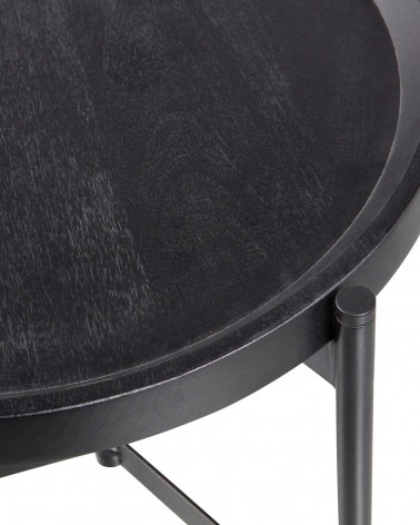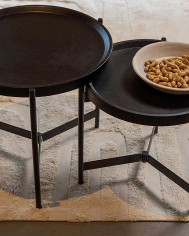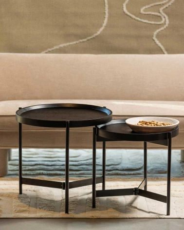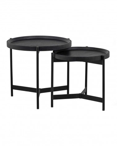 Sada dvoch príručných stolíkov Lizzy pochádza z kolekcie Exclusive holandskej značky interiérového dizajnu WOOOD. Stolová súprava má elegantný dizajn s jednoduchým rámom nôh a štýlovou stolovou doskou. Stolíky majú matnú čiernu povrchovú úpravu, čo z nich robí nadčasový pár. Zvýšený okraj stolových dosiek zaisťuje, že rozliate nápoje zostanú bezpečne na stole, čo je rovnako praktické pre rodinu s malými deťmi!