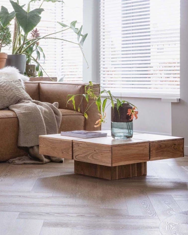 Konferenčný stolík Lyra z kolekcie Exclusive holandskej značky interiérového dizajnu WOOOD je dokonalým doplnkom pre štýlové štýly interiéru. Lyra vyzerá štýlovo v botanickom, vidieckom alebo retro interiéri. Doska stola je tvorená štyrmi blokmi a dáva pekný vzhľad robustnej blokovej nohe.