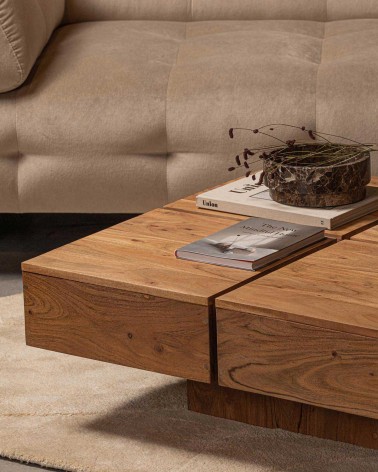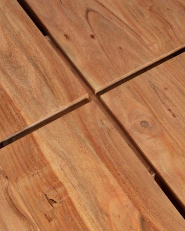 Akáciové drevo sa vyznačuje teplým červeným leskom. Táto farba používaním a vystavením svetlu mierne zmäkne. Jasná kresba a označenie plameňa dodávajú tomuto odolnému drevu veľa charakteru. Farebné nuansy, nepravidelnosti a praskliny dodávajú tomuto prírodnému produktu hĺbku a charakter. Vrchná časť je dutá.