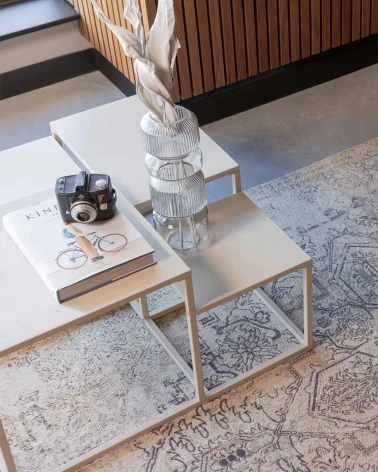 Oživte svoj priestor týmto štýlovým a funkčným konferenčným stolíkom so 4mi doskami v rôznych úrovniach a pridajte do svojho interiéru moderný nádych. Je to elegantný a multifunkčný kus nábytku, ktorý prináša moderný štýl do vášho domova alebo kancelárie. Jeho neutrálny kovový design sa jednoducho začlení do rôznych priestorových konceptov a farebných schém.