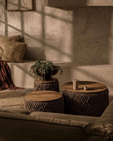 Objavte kolekciu Knut od značky dBodhi. Rad konferenčných stolíkov, ktoré spájajú funkčnosť s nádychom malebnej indonézskej krajiny. Kolekcia obsahuje stolíky rôznych veľkostí, z ktorých každý predstavuje jedinečný, hravý dizajn. Kusy slúžia ako stolíky a dekoratívne prvky, pričom niektoré sa dokonca premenia na štýlové koše. Sú vyrobené z ekologických materiálov a pýšia sa ručne pletenými vláknami abaky a doskami vyrobenými z recyklovaného teakového dreva.