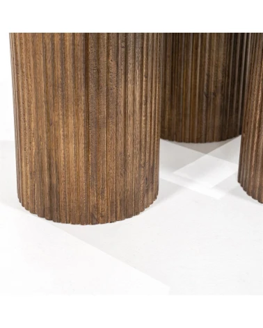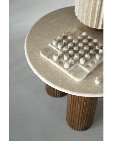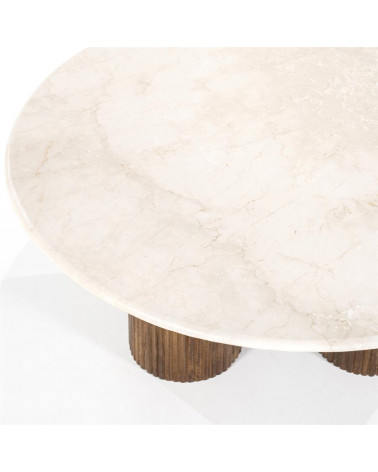 Premeňte svoj domov na štýlové oázu s nadčasovou krásou konferenčného stolíka Xavi. Jeho okrúhla doska z lakovaného mramoru podopretá tromi drevenými nohami zdobenými ryhovaným dizajnom dodá Xavi nádych opulentnosti každému obytnému priestoru. Zhromaždite rodinu okolo tohto nádherného stolíka, aby ste si užili intímne rozhovory alebo si jednoducho oddýchli pri šálke kávy. Jeho elegantný vzhľad umocňuje atmosféru sofistikovanou estetikou.