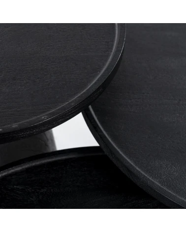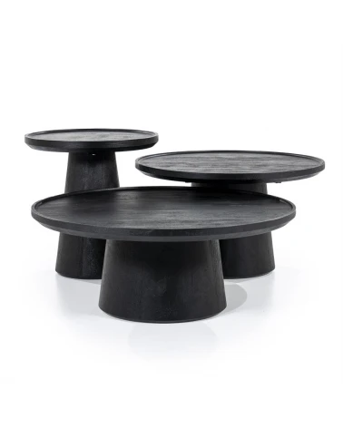 Praktický a štýlový konferenčný stolík Ron od Eleonory premení obytný priestor na príjemnú svätyňu. Vyrobené z mangového dreva v lákavom čiernom odtieni, vyžaruje zmysel pre sofistikovanosť, ktorá určite zapôsobí. Jeho okrúhla stolová doska a robustná základňa podstavca vytvárajú jemný ústredný bod, vďaka čomu je všestranným doplnkom rôznych interiérových dizajnov. Ron môže byť stredobodom modernej alebo minimalistickej obývačky, kde slúži ako elegantný doplnok a funkčný povrch na nápoje, dekoráciu alebo materiál na čítanie.