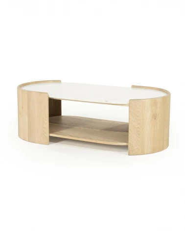 Vneste do svojho obytného priestoru sofistikovanosť s oválnym konferenčným stolíkom z bieleho mramoru od Eleonory Don. Tento luxusný kúsok vyrobený z prvotriedneho bieleho mramoru dodá každej miestnosti nádych elegancie. Jeho oválny tvar a hladký povrch vytvárajú dojem rafinovanosti, vďaka čomu je výrazným prvkom vo vašom domove.