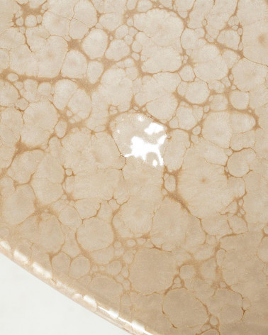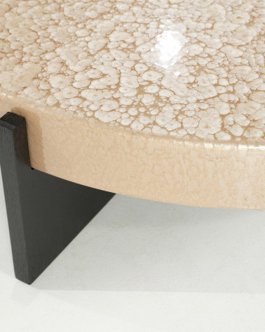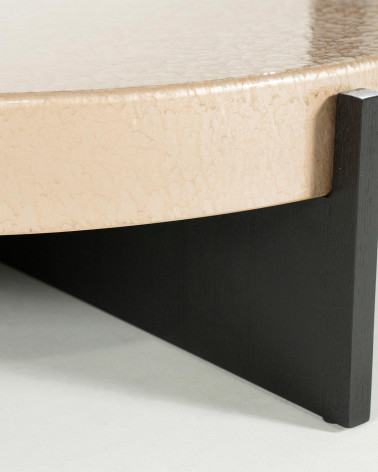 Doska stolíka je vyrobená z dubovej dyhy, ktorá dodáva stolíku teplý a prirodzený vzhľad, zároveň zaručuje odolnosť a dlhú životnosť. Povrch je upravený lesklým náterom, ktorý zvýrazňuje kresbu dreva a dodáva stolíku jemný luxusný lesk. Béžová farba dosky sa ľahko kombinuje s rôznymi štýlmi interiéru a vniesie do priestoru pocit elegancie.