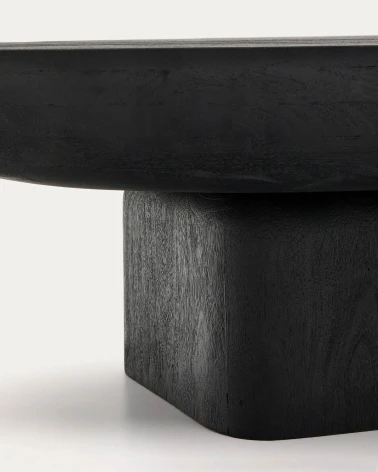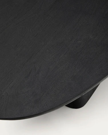 Tento konferenčný stolík z masívneho akáciového dreva kombinuje dizajn a funkčnosť v univerzálnom a nadčasovom kuse nábytku. Jeho čierny povrch zvýrazňuje prirodzenú textúru dreva, čo vám umožňuje oceniť jeho jedinečné zrno a odtiene, čím mu dodáva autentický a elegantný štýl. Jeho robustný dizajn z masívneho dreva mu dáva rustikálny pocit, ktorý je vyvážený jemnými krivkami základne a vrchu, ktoré zjemňujú jeho prítomnosť a dodávajú mu rafinovaný dotyk. FSC™ 100% certifikát sledovateľnosti, ktorý zaručuje zodpovedné a udržateľné hospodárenie s lesmi. Navrhnutý tak, aby sa prispôsobil akémukoľvek priestoru, jeho nohy sú vybavené ochrannými filcami, ktoré zabraňujú poškodeniu podlahy, čím zabezpečujú väčšiu stabilitu a starostlivosť pri každodennom používaní. Perfektný doplnok na prinesenie tepla a sofistikovanosti do akéhokoľvek priestoru.
