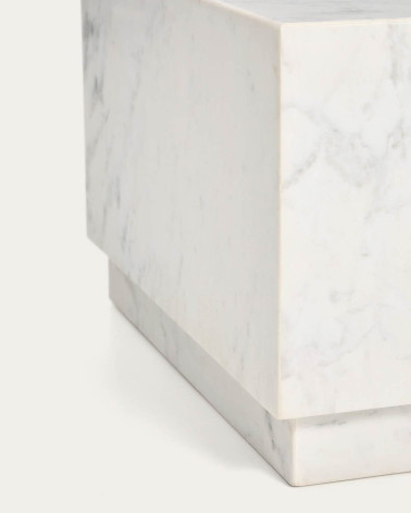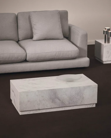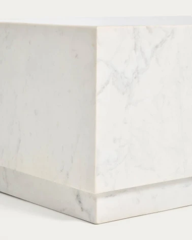 Stoly Sorein kombinujú pevnosť mramoru s geometrickým a rafinovaným dizajnom, ktorý pridáva osobnosť priestoru. Vyrobené z 15 mm hrubých pevných mramorových dosiek, zložených tak, aby vytvorili kocku s dokonalými líniami. Jeho prázdny vnútorný priestor znižuje hmotnosť a uľahčuje presúvanie, pričom si zachováva robustnú prítomnosť, ktorá charakterizuje tento materiál. Každý stôl je jedinečný, s vlastnými odtieňmi a žilami, ktoré z neho robia exkluzívny kus. Obsahuje plastové ochrany na spodnej strane, aby sa predišlo poškriabaniu podlahy. Nadčasový a elegantný dizajn, ktorý robí z mramoru skutočného protagonistu.