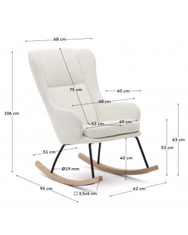 Hojdacie kreslo Maustin, Biele boucle, KaveHome