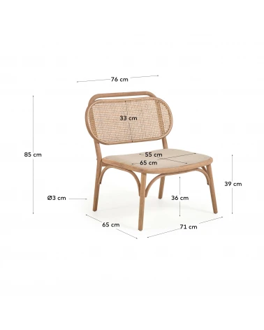 Doriane je ručne vyrábané kreslo z udržateľného masívneho dubu, ručne tkaného ratanu a sedadlo s vodoodpudivým čalúnením s ľanovým efektom. Ideálny na vytvorenie modernej obývačky s prirodzeným vzhľadom vďaka modernizovanému klasickému dizajnu.