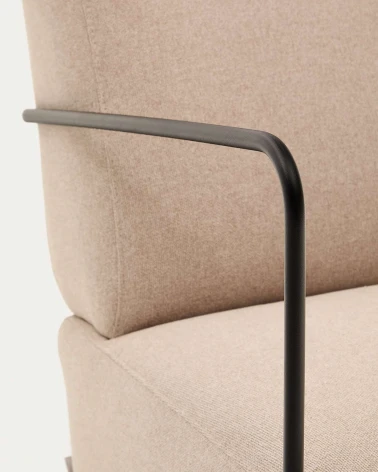 Kreslo Gamer s tenkou oceľovou konštrukciou a čalúnené béžovou priliehavou štruktúrovanou látkou je navrhnuté spoločnosťou Kave Home inšpirované tendenciou zviditeľniť celú konštrukciu. Čo vidíte, to dostanete. Okrem pocitu pohodlia ho teraz môžete aj vidieť.