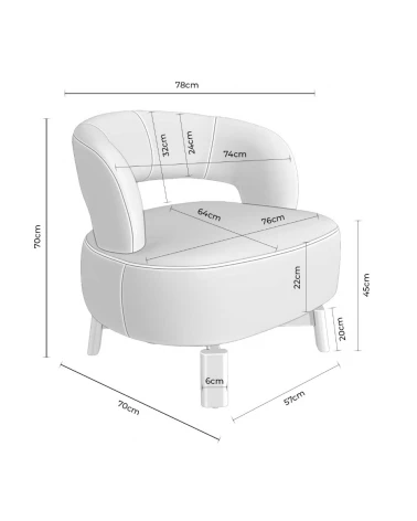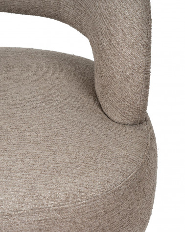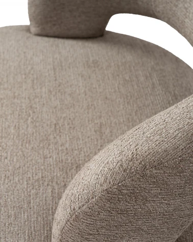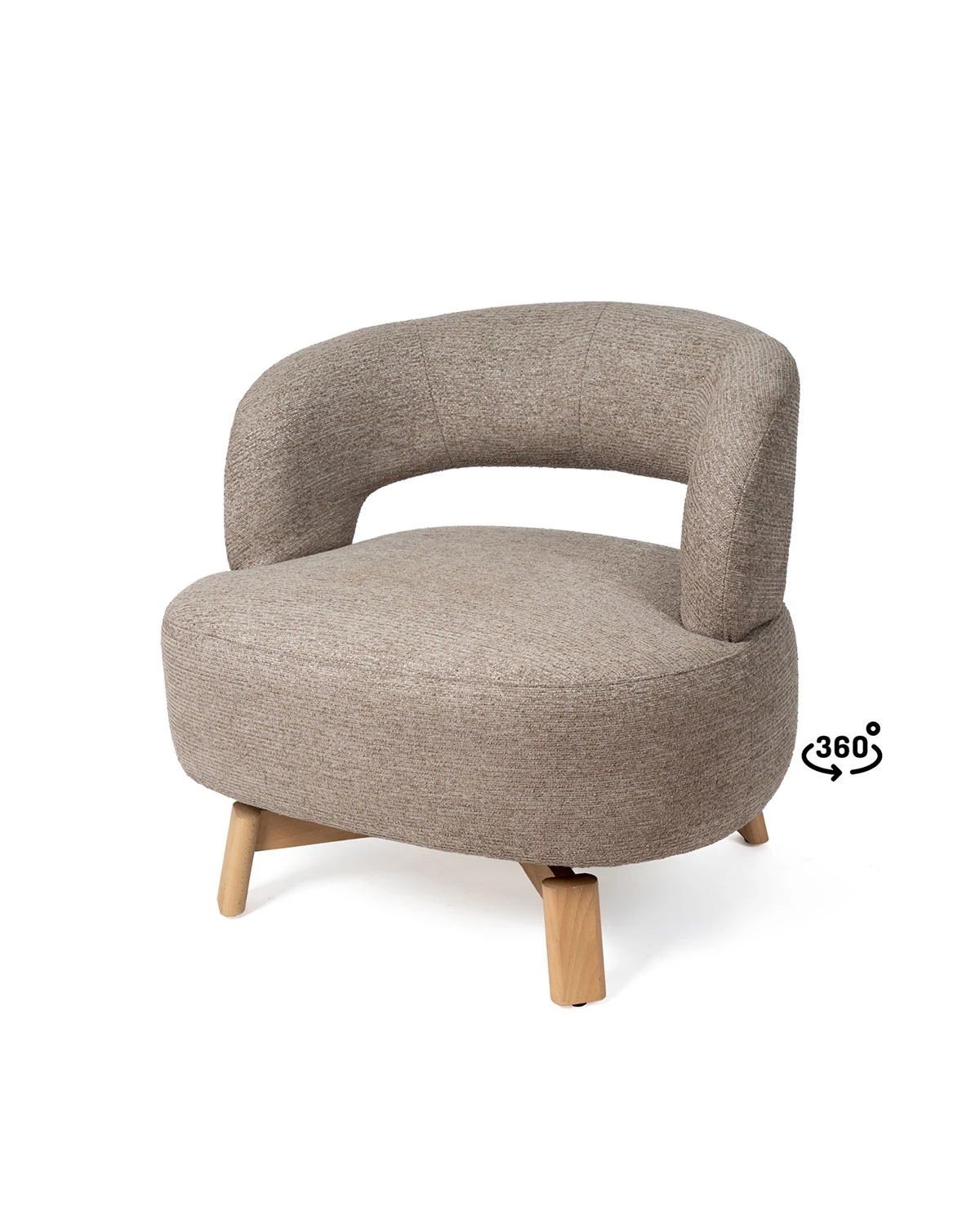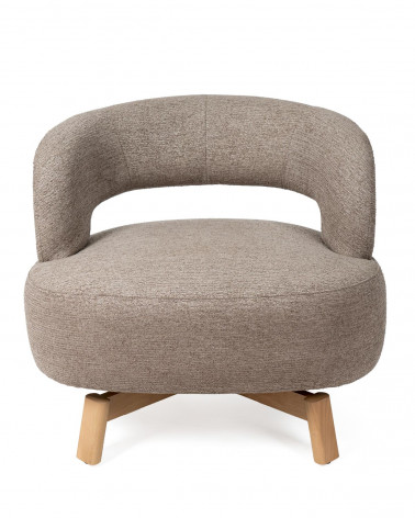 Jeho nohy z bukového dreva pozdvihujú konštrukciu s jemným prírodným kontrastom, poskytujú stabilitu a dodávajú organický nádych celku. Kreslo je navyše vybavené otočným mechanizmom o 360°, ktorý zvyšuje pohodlie a funkčnosť, vhodný na rôzne použitia počas dňa.