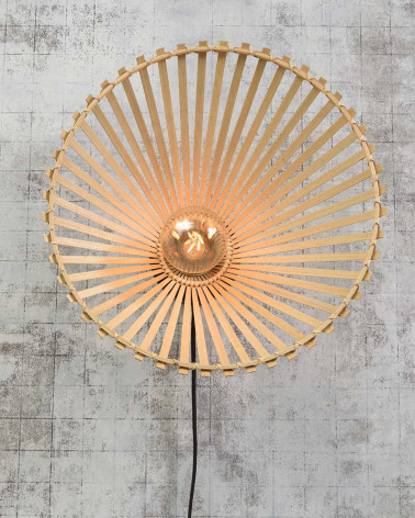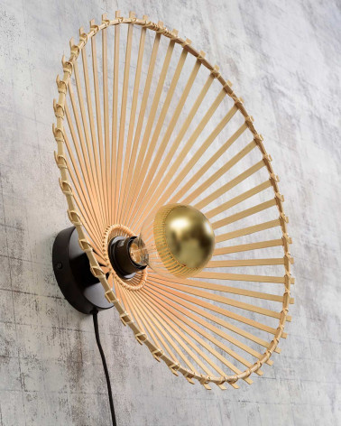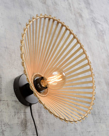 Nástenná lampa Bromo zaujme svojím nekonvenčným tvarom a ručne tkaným tienidlom z prírodného bambusu. Jej nepravidelná silueta vytvára zaujímavý vizuálny akcent a zároveň zabezpečuje príjemné, rozptýlené osvetlenie. Vďaka svojmu dizajnu pôsobí ako umelecký prvok na stene. Ideálna do čítacieho kútika, chodby alebo spálne. Spojenie prírody, remeselnosti a funkčnosti robí z tejto lampy výnimočný doplnok do každého moderného interiéru.