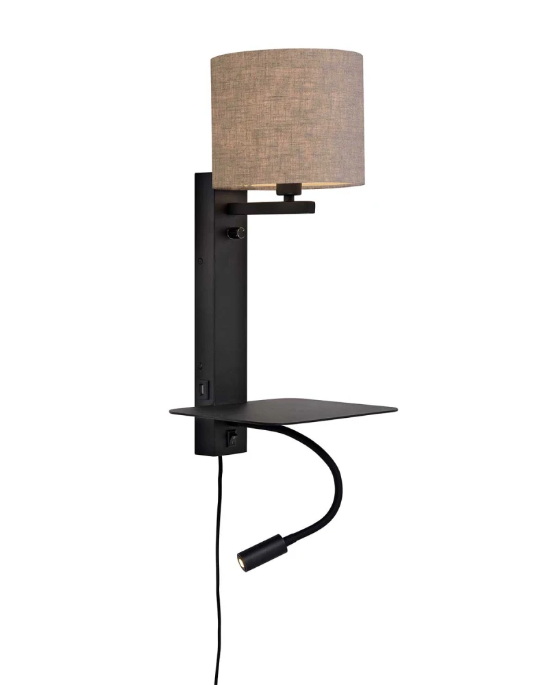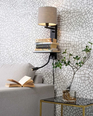 Nástenná lampa Florence prináša kombináciu funkčnosti a dizajnu v jednom. Má praktickú poličku, kam si odložíš smartphone či knihu, a zabudovaný USB port, ktorý ti umožní pohodlne nabíjať zariadenia priamo pri posteli. Ďalej obsahuje čítacie svetlo na flexibilnom ramene, plus nastaviteľné stmievanie svetla pre ideálne osvetlenie. Vďaka elegantnému prevedeniu z kovu a látky dodá priestoru útulnú, no zároveň praktickú atmosféru.