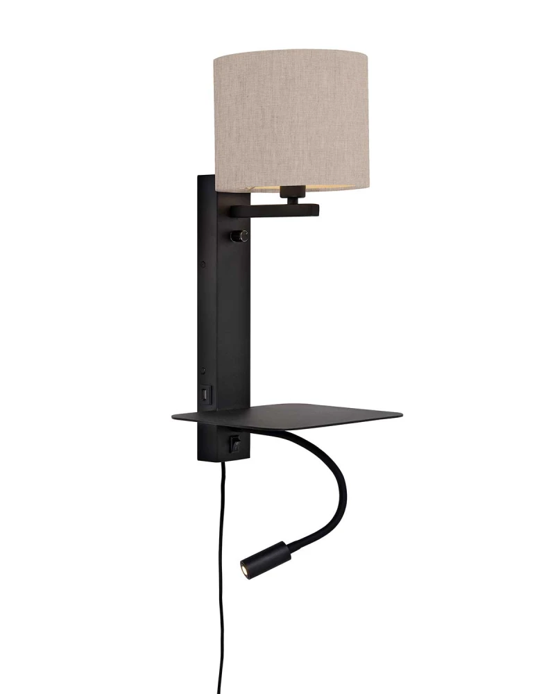 Nástenná lampa Florence prináša kombináciu funkčnosti a dizajnu v jednom. Má praktickú poličku, kam si odložíš smartphone či knihu, a zabudovaný USB port, ktorý ti umožní pohodlne nabíjať zariadenia priamo pri posteli. Ďalej obsahuje čítacie svetlo na flexibilnom ramene, plus nastaviteľné stmievanie svetla pre ideálne osvetlenie. Vďaka elegantnému prevedeniu z kovu a látky dodá priestoru útulnú, no zároveň praktickú atmosféru.