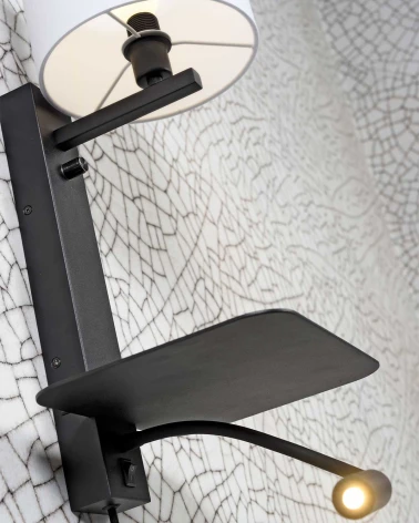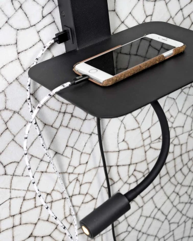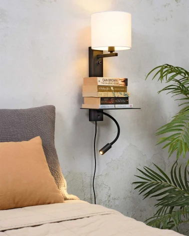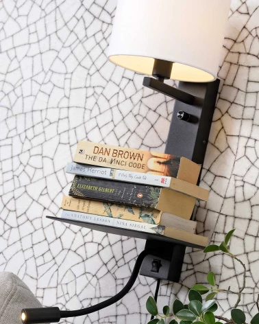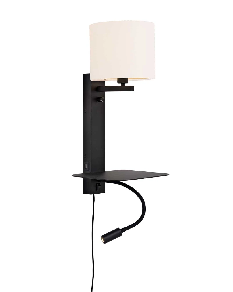 Nástenná lampa Florence prináša kombináciu funkčnosti a dizajnu v jednom. Má praktickú poličku, kam si odložíš smartphone či knihu, a zabudovaný USB port, ktorý ti umožní pohodlne nabíjať zariadenia priamo pri posteli. Ďalej obsahuje čítacie svetlo na flexibilnom ramene, plus nastaviteľné stmievanie svetla pre ideálne osvetlenie. Vďaka elegantnému prevedeniu z kovu a látky dodá priestoru útulnú, no zároveň praktickú atmosféru.