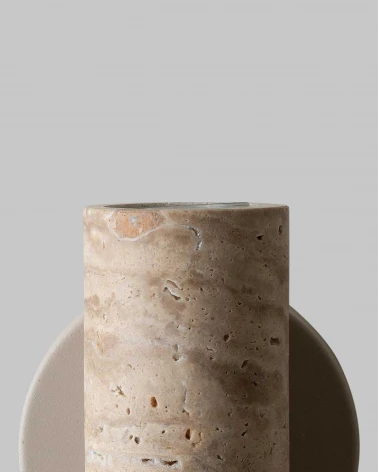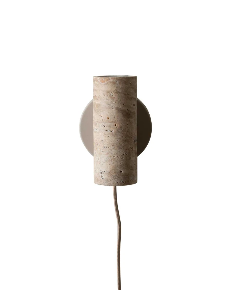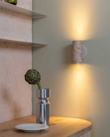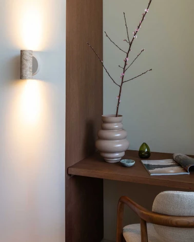 Tivoli nástenná lampa prináša rovnakú estetiku ako ostatné modely, ale v kompaktnom formáte pre steny. Používa materiály ako mramor/travertín v menšom prevedení, doplnené kovovými detailmi aby ladila so zvyškom kolekcie.