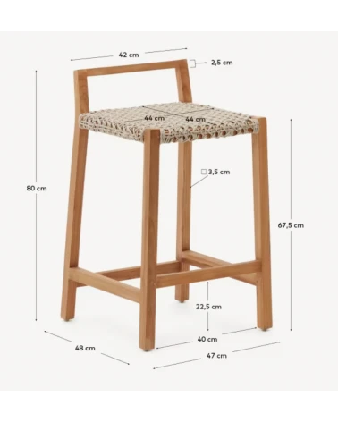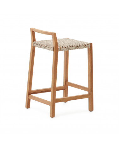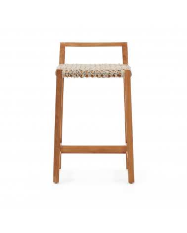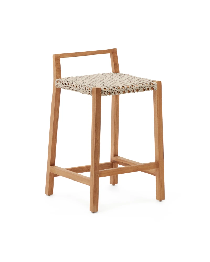 Chcete prirodzený vzhľad v interiéri aj exteriéri? Považujte to za vybavené! Pultová stolička Giverola je vyrobená z masívneho teakového dreva, dokonalého prírodného materiálu, aby ste si užili svoj domov štýlovo. Sedadlo vyrobené z ručne pletenej lanovej šnúry odolnej voči UV žiareniu. Vhodné pre vnútorné aj vonkajšie použitie.