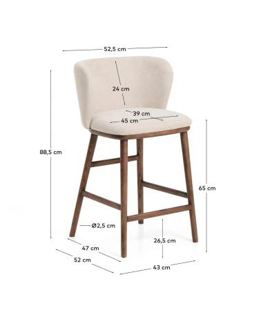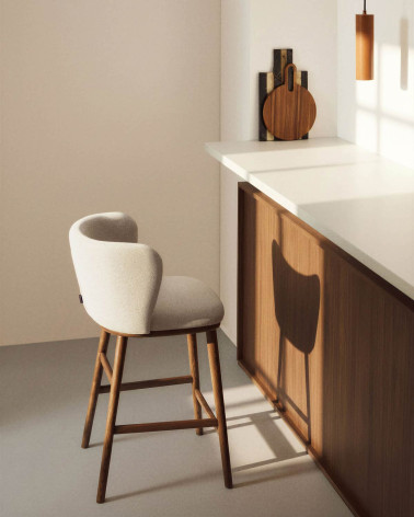 Pultová stolička Ciselia, béžová, nohy tmavé drevo, 65 cm, KaveHome