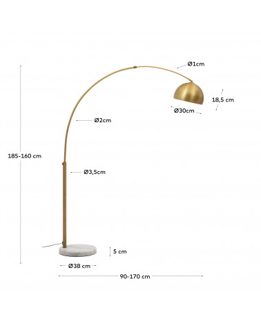 Kovová stojaca lampa s mosadzným povrchom a bielym mramorovým podstavcom. Nastaviteľná výška a kĺbové rameno, takže sa dá prispôsobiť každej miestnosti.