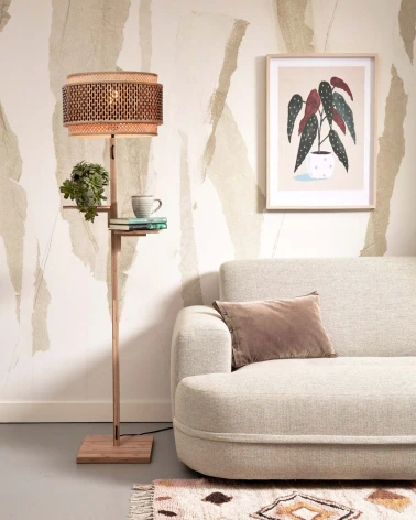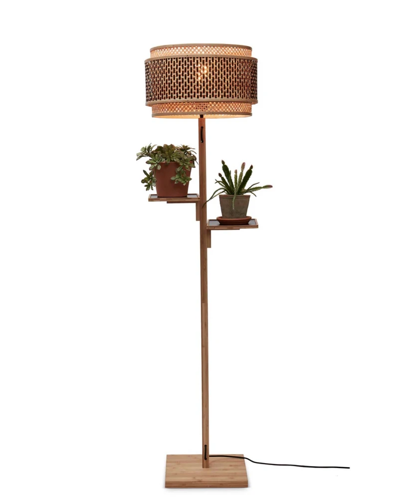 Stojaca lampa Bhutan s poličkou, výška 160 cm, prírodná, Good&Mojo