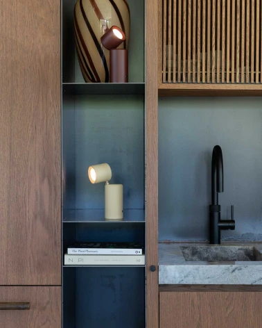 Vďaka integrovanej batérii je úplne bezdrôtová a nabíjateľná, čo umožňuje jej flexibilné používanie v interiéri aj exteriéri (napr. na terase či v zimnej záhrade). Kompaktný tvar a minimalistický dizajn z nej robia ideálne osvetlenie pre moderné priestory.
