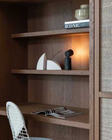 Vďaka integrovanej batérii je úplne bezdrôtová a nabíjateľná, čo umožňuje jej flexibilné používanie v interiéri aj exteriéri (napr. na terase či v zimnej záhrade). Kompaktný tvar a minimalistický dizajn z nej robia ideálne osvetlenie pre moderné priestory.