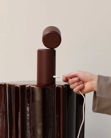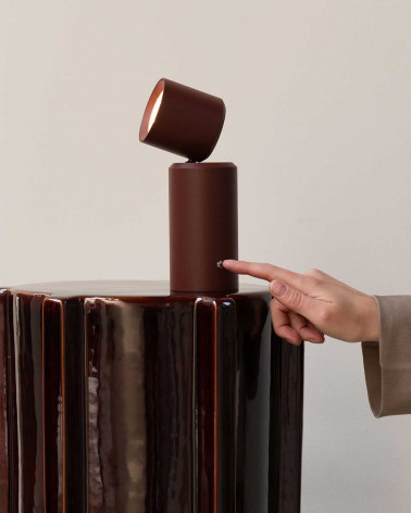 Moderná a praktická prenosná lampa Milan v elegantnom burgundy odtieni vyniká svojou všestrannosťou. Môžete ju jednoducho položiť na stôl ako dizajnové doplnkové svetlo alebo ju pomocou priloženého nástenného adaptéra upevniť na stenu.