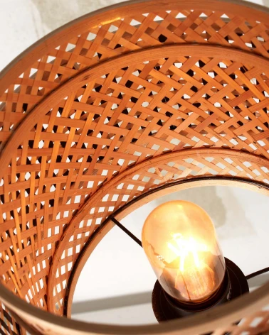 Bhutan je štýlová stolová lampa, ktorá prinesie do interiéru prirodzenosť a vizuálne teplo. Jej tienidlo z ručne tkaného bambusu pôsobí vzdušne a jemne filtruje svetlo, čím vytvára útulnú atmosféru. Vďaka nadčasovému dizajnu sa hodí na nočný stolík, do obývačky aj do pracovne.