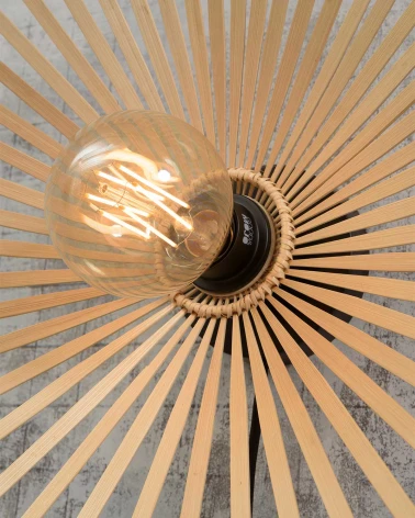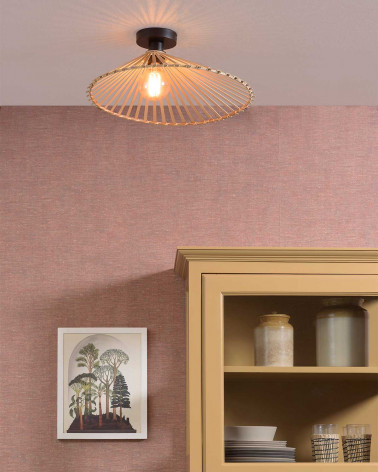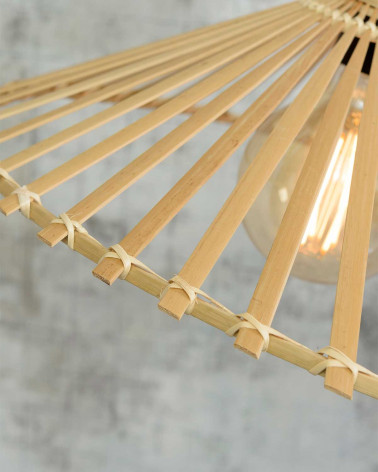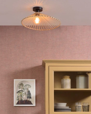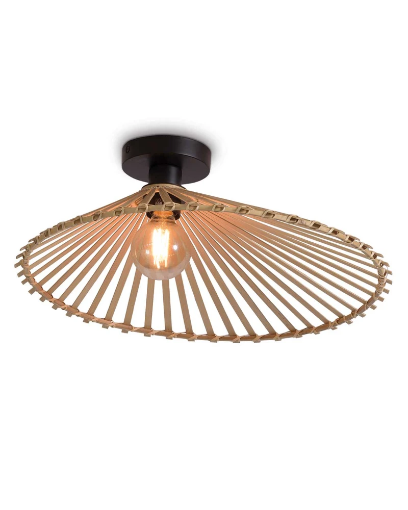 Asymetrická stropná lampa Bromo prináša do interiéru dynamiku a originalitu. Jej nepravidelný tvar z ručne tkaného bambusu vytvára zaujímavú svetelnú kresbu a pôsobí ako umelecký prvok na strope. Vďaka plochejšiemu profilu je ideálna do miestností s nižším stropom, kde vytvára príjemnú atmosféru bez toho, aby pôsobila rušivo. Dizajnovo vynikne v moderných aj prírodne ladených interiéroch ako štýlové a zároveň ekologické osvetlenie.