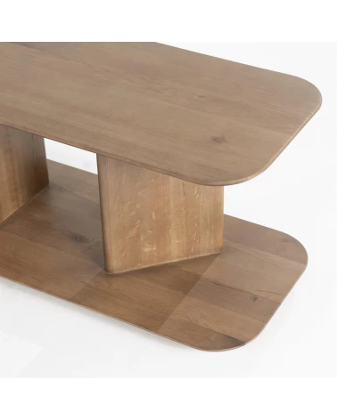 Úchvatný TV stolík z lakovaného dubu od Eleonory Ty vyžaruje eleganciu a luxus. Tento stolík, vyrobený z kvalitného dubového dreva a povrchovo upravený lesklým lakom, je výrazným kúskom, ktorý dodá každej obývačke nádych sofistikovanosti. Ideálne na uloženie vášho televízora a mediálnych zariadení a zároveň pozdvihne váš interiérový dizajn.