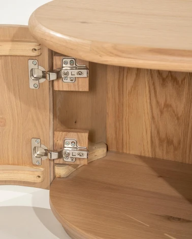 Pozdvihnite svoj obytný priestor so 4-dverovou TV skrinkou Josh od značky Eleonora, vyrobenou z kvalitného lakovaného dubového dreva. Elegantná povrchová úprava zvýrazňuje prirodzenú štruktúru dreva a dodáva skrinke moderný, no zároveň nadčasový charakter.