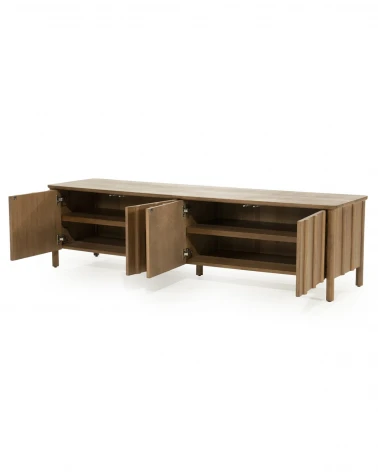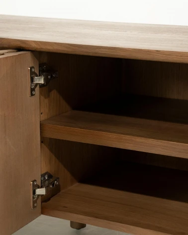 Pozdvihnite svoj obytný priestor so 4-dverovou TV skrinkou Eleonora Jake vyrobenou z nádherného dubového dreva. Zažite krásu a odolnosť tohto luxusného kusu, ktorý je ideálny na vylepšenie vášho domáceho kina. Jeho elegantný dizajn a dostatok úložného priestoru z neho robia ideálny doplnok do každého elegantného domova.