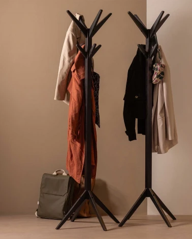 Tento elegantný čierny vešiak je ideálnym doplnkom pre vašu predsieň, spálňu alebo akúkoľvek inú časť vášho domova alebo kancelárie, kde potrebujete praktické a štýlové riešenie na ukladanie oblečenia a doplnkov.
