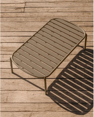 Hliníkový konferenčný stolík so zaoblenou rúrkovou úpravou. Odolný voči hrdzi, korózii a UV žiareniu. Ľahký materiál, 100 % vhodný na vonkajšie použitie. Dizajn vytvorilo štúdio Made exkluzívne pre Kave Home. Inšpirované organickými formami riečnych kamienkov a kameňov. Skombinujte ho so zvyškom kolekcie.