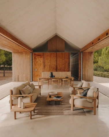 Kolekcia Icaro je tradičný dizajn vyrobený z prírodných materiálov, ktorý si môžete vychutnať v domácnosti aj vonku. Masívne teakové drevo, inšpirované japonskými štruktúrami, sprostredkúva pocit blízkosti, pohodlia a tepla.