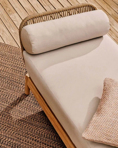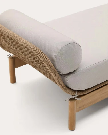 Ležadlo z masívneho akáciového dreva s ručne tkanou polyesterovou šnúrou. Odolné voči UV žiareniu. Vhodné na vnútorné aj vonkajšie použitie. Vankúše s odnímateľnými poťahmi. Drevo so 100 % certifikáciou FSC reťazca ochrany a pochádza zo zodpovedného modelu lesného hospodárstva. Možno kombinovať so zvyškom kolekcie.