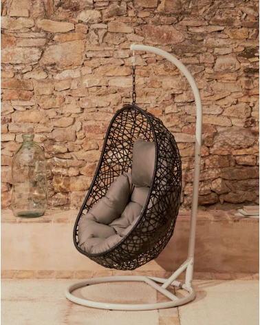 Tento polyratanový dizajn je nevyhnutnosťou, aby vášmu domovu dodal exotický nádych a užili ste si ho počas svojich relaxačných dní vonku alebo v interiéri. Usaďte sa do jeho priložených vankúšov a uvidíte, že vaše chvíle relaxu sú povýšené na inú úroveň. Závesné kreslo z polyratanu s prírodným ručne pleteným povrchom. Poly ratan zachováva prirodzený vzhľad prútia, je odolný voči poveternostným vplyvom a ľahko sa čistí.