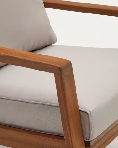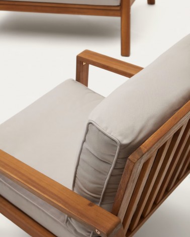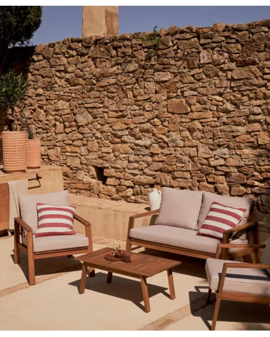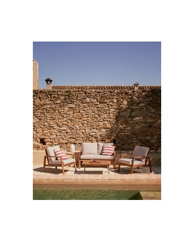 Súprava Frares vám poskytuje všetko pohodlie, ktoré potrebujete, v kompaktnej veľkosti, takže si môžete vychutnať večery pod holým nebom. Súprava obsahuje 2-miestnu pohovku, 2 kreslá a konferenčný stolík z masívneho akáciového dreva. Drevo s certifikáciou FSC™, pochádzajúce z trvalo udržateľných lesov s kontrolovaným výrubom. Obsahuje vankúše s odnímateľnými poťahmi.