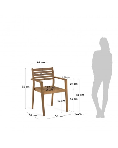 Pokiaľ ide o vonkajší nábytok, prírodné materiály sú najvhodnejšie na spojenie so svetom okolo nás. Kreslo Hanzel je vyrobené zo 100% pevného udržateľného akáciového dreva. Emilii je stohovateľná a nezaberie miesto, keď sa nepoužíva. Stolička s podrúčkami, vhodná do vnútorných aj vonkajších priestorov.